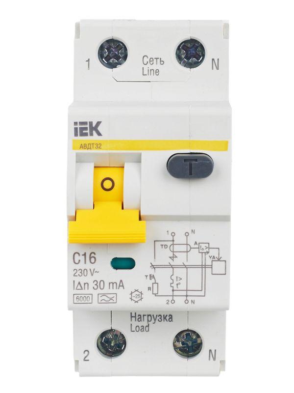 Выключатель автоматический дифференциального тока 2п (1P+N) C 16А 30мА тип A 6кА АВДТ-32 KARAT IEK MAD22-5-016-C-30