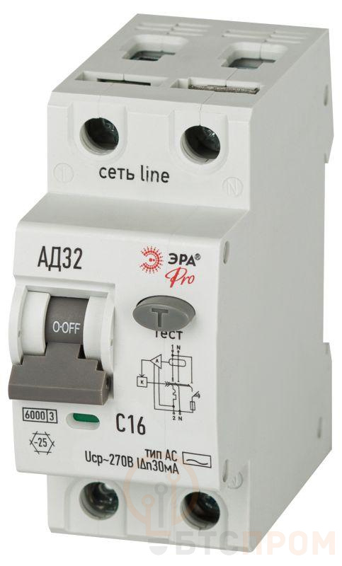 Выключатель автоматический дифференциального тока 2п (1P+N) C 16А 30мА тип AC 6кА АД-32 электрон. защита 230В PRO D326E2C16AC30P Эра Б0059111