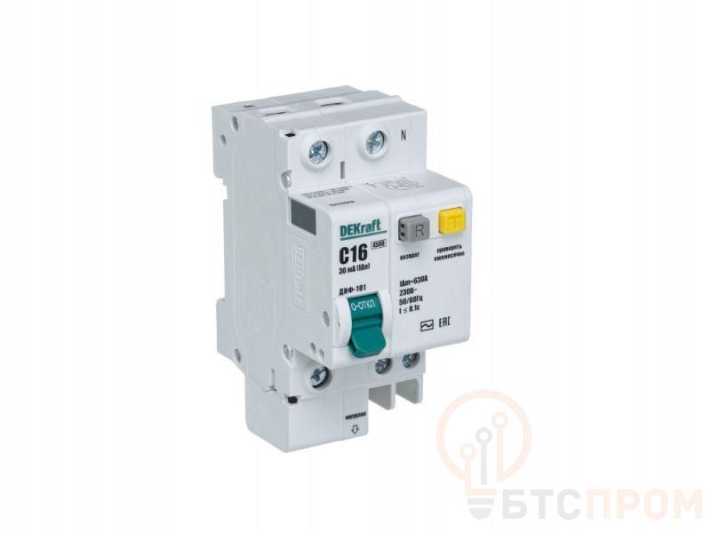 Выключатель автоматический дифференциального тока 2п (1P+N) C 16А 30мА тип AC ДИФ-101 со встроен. защит. от сверхтоков DEKraft 15157DEK