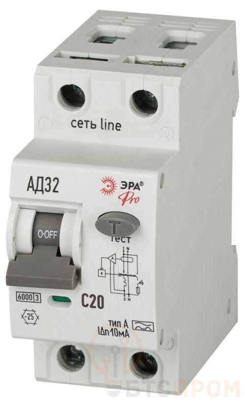 Выключатель автоматический дифференциального тока 2п (1P+N) C 20А 10мА тип А 6кА АД-32 электрон. PRO D326E2C20А10 Эра Б0059060