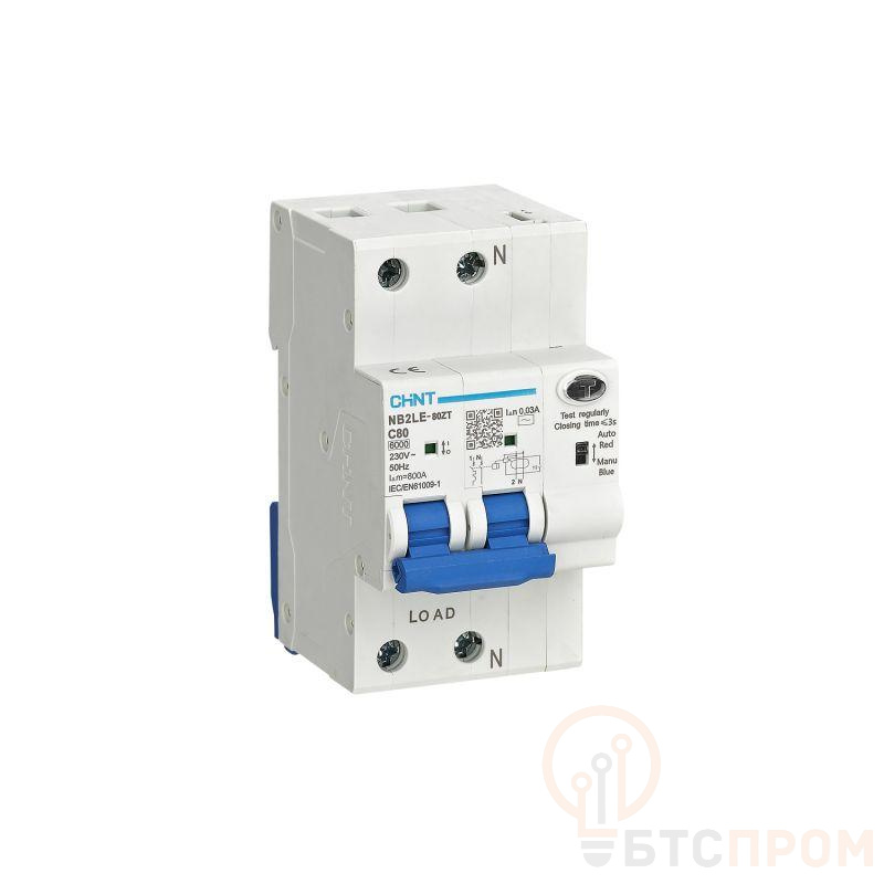 Автоматический выключатель дифференциального тока АВДТ NB2LE-80ZT от CHINT — это современное устройство, обеспечивающее комплексную защиту электрической цепи. Оно сочетает в себе функции автоматического выключателя и устройство защитного отключения (УЗО).