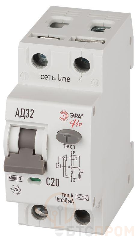 Выключатель автоматический дифференциального тока 2п (1P+N) C 20А 30мА тип A 6кА АД-32 электрон. PRO D326E2C20A30 Эра Б0059196