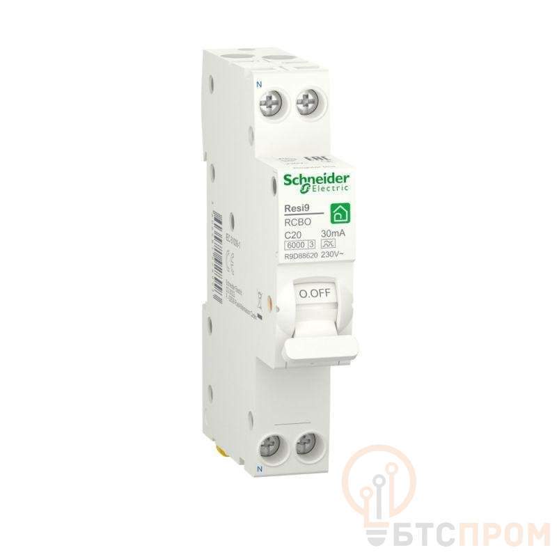 Выключатель автоматический дифференциального тока 2п (1P+N) C 20А 6000А 30мА тип A Resi9 18мм SchE R9D88620