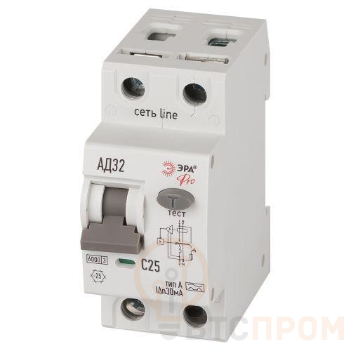 Выключатель автоматический дифференциального тока 2п (1P+N) C 25А 30мА тип A 6кА АД-32 электрон. PRO D326E2C25A30 Эра Б0059198