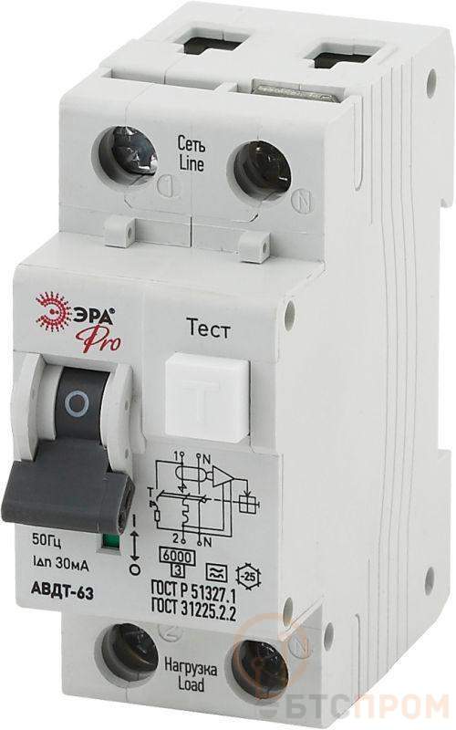 Выключатель автоматический дифференциального тока 2п (1P+N) C 25А 30мА тип A АВДТ 63 Pro NO-901-83 Эра Б0031833