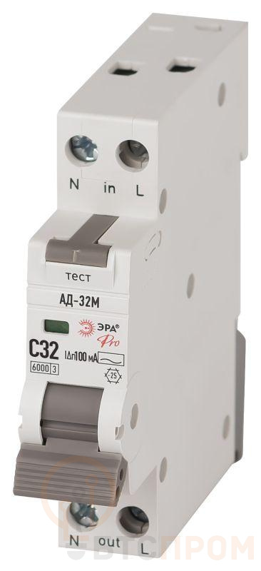 Выключатель автоматический дифференциального тока 2п (1P+N) C 32А 100мА тип АС 6кА АД-32M электрон. PRO DM32E2C32AC100 Эра Б0058989