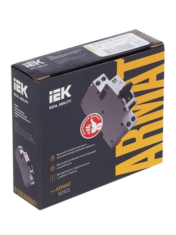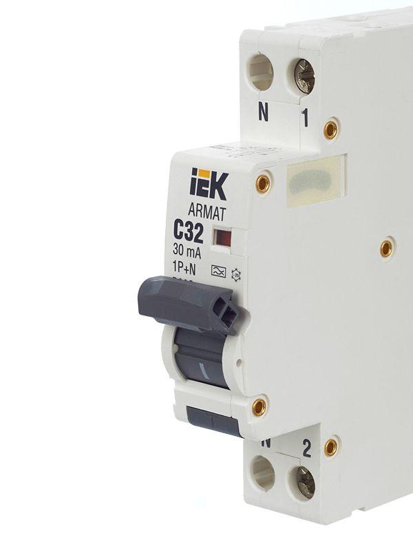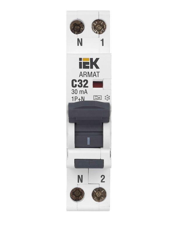 Выключатель автоматический дифференциального тока 2п (1P+N) C 32А 30мА тип A АВДТ B06S 18мм ARMAT IEK AR-B06S-1N-C32A030