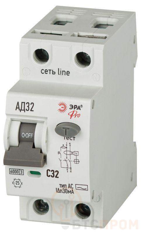 Выключатель автоматический дифференциального тока 2п (1P+N) C 32А 30мА тип AC 6кА АД-32 электромехан. PRO D326M2C32AC30 Эра Б0059128