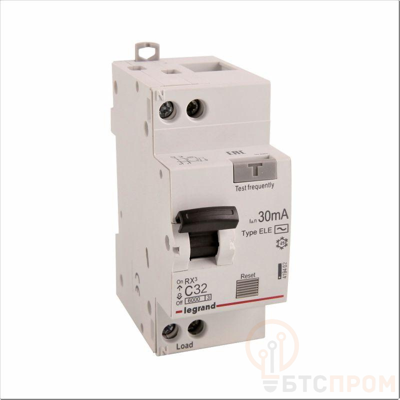 Выключатель автоматический дифференциального тока 2п (1P+N) C 32А 30мА тип AC 6кА RX3 ИЭК Leg 419402