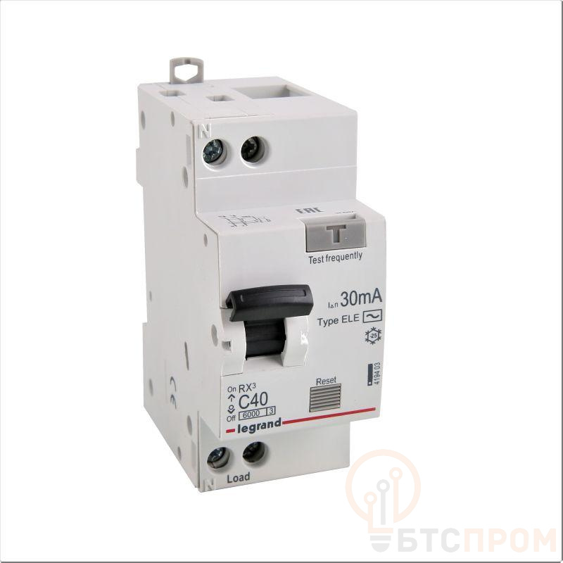 Выключатель автоматический дифференциального тока 2п (1P+N) C 40А 30мА тип AC 6кА RX3 ИЭК Leg 419403