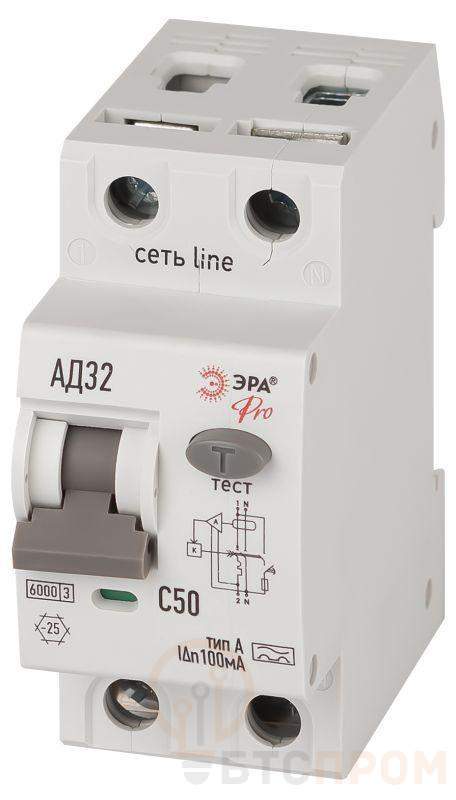 Выключатель автоматический дифференциального тока 2п (1P+N) C 50А 100мА тип A 6кА АД-32 электрон. PRO D326E2C50A100 Эра Б0059203