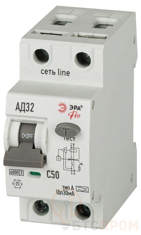 Выключатель автоматический дифференциального тока 2п (1P+N) C 50А 30мА тип A 6кА АД-32 электрон. PRO D326E2C50A30 Эра Б0059202