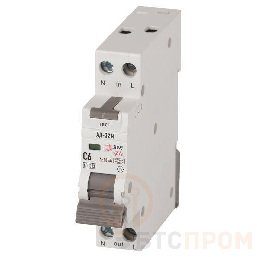 Выключатель автоматический дифференциального тока 2п (1P+N) C 6А 10мА тип А 6кА АД-32M электрон. PRO DM32E2C06A10 Эра Б0058991