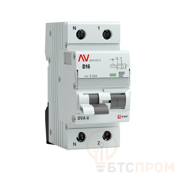 Выключатель автоматический дифференциального тока 2п (1P+N) D 16А 30мА тип A 6кА DVA-6 Averes EKF rcbo6-1pn-16D-30-a-av