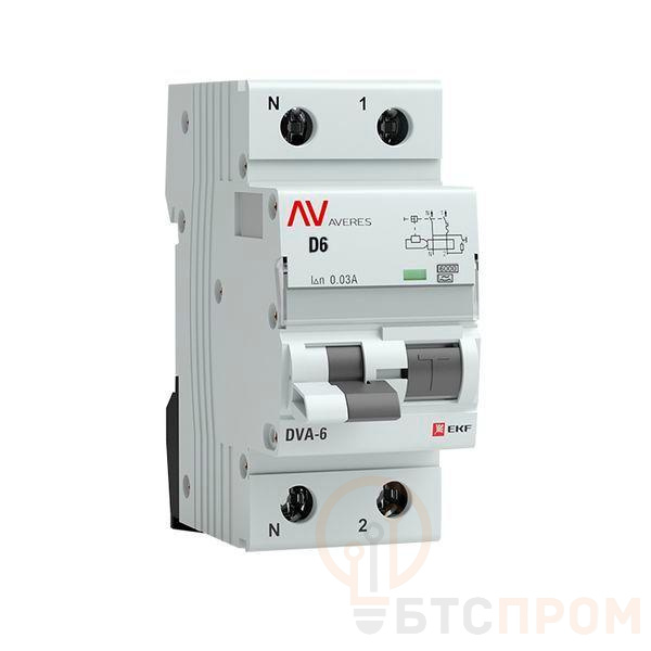 Выключатель автоматический дифференциального тока 2п (1P+N) D 6А 30мА тип A 6кА DVA-6 Averes EKF rcbo6-1pn-6D-30-a-av