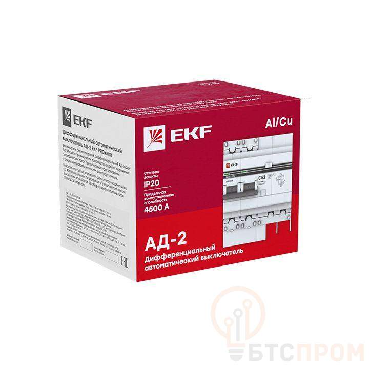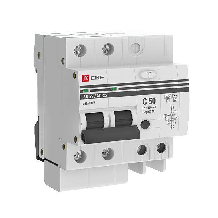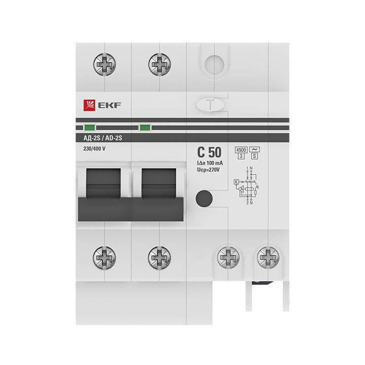 Выключатель автоматический дифференциального тока 2п 4мод. C 50А 100мА тип AC 4.5кА АД-2 S PROxima EKF DA2-50-100S-pro