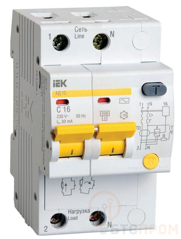 Выключатель автоматический дифференциального тока 2п B 16А 30мА тип A 4.5кА АД-12 KARAT IEK MAD10-2-016-B-030