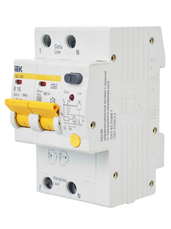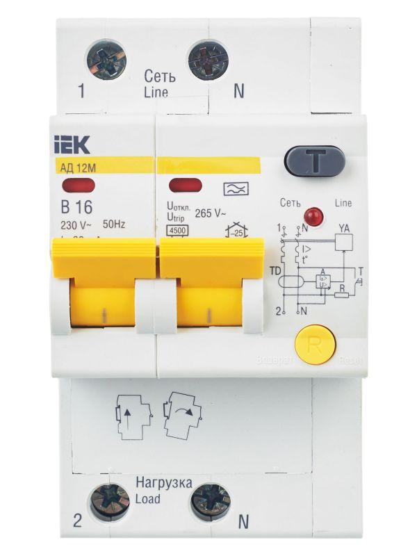 Выключатель автоматический дифференциального тока 2п B 16А 30мА тип A 4.5кА АД-12М KARAT IEK MAD12-2-016-B-030