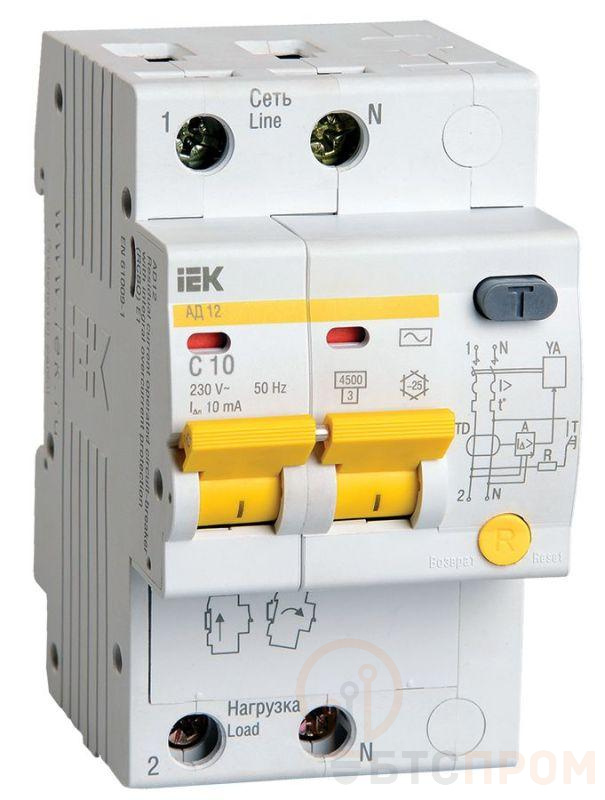 Выключатель автоматический дифференциального тока 2п C 10А 10мА тип AC 4.5кА АД-12 KARAT IEK MAD10-2-010-C-010