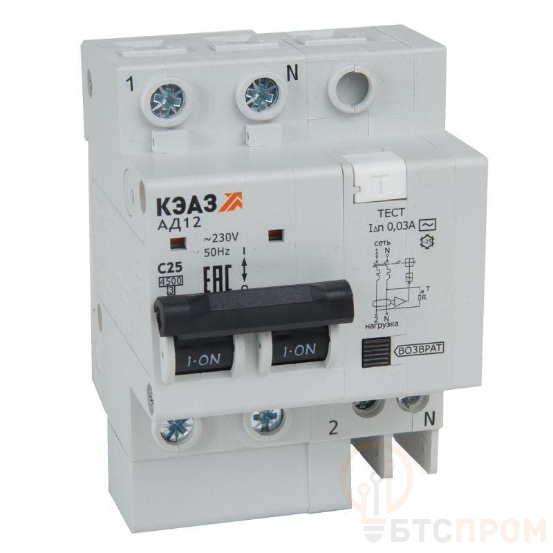 Выключатель автоматический дифференциального тока 2п C 10А 300мА тип AC 4.5кА АД12-24C10-AC УХЛ4 КЭАЗ 318745