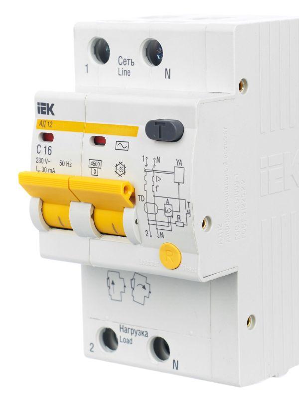 Выключатель автоматический дифференциального тока 2п C 16А 30мА тип AC 4.5кА АД-12 KARAT IEK MAD10-2-016-C-030