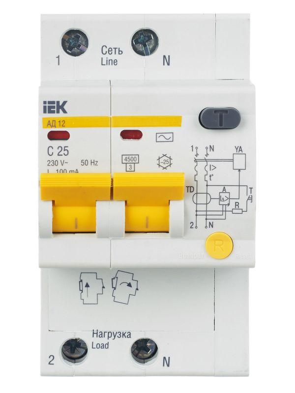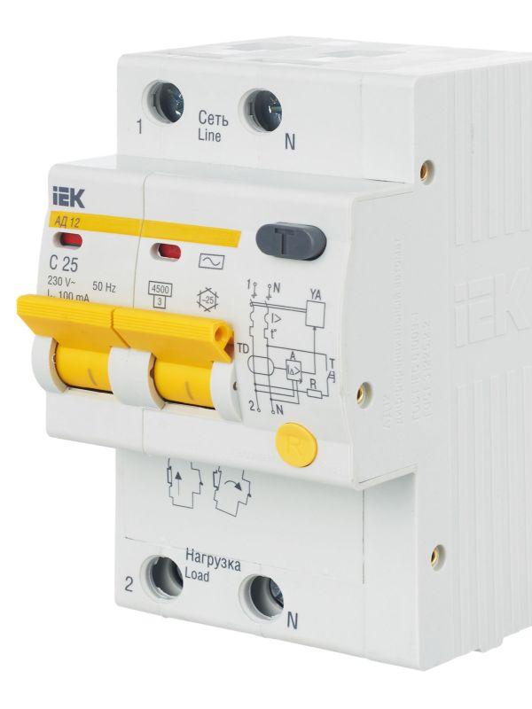 Выключатель автоматический дифференциального тока 2п C 25А 100мА тип AC 4.5кА АД-12 KARAT IEK MAD10-2-025-C-100