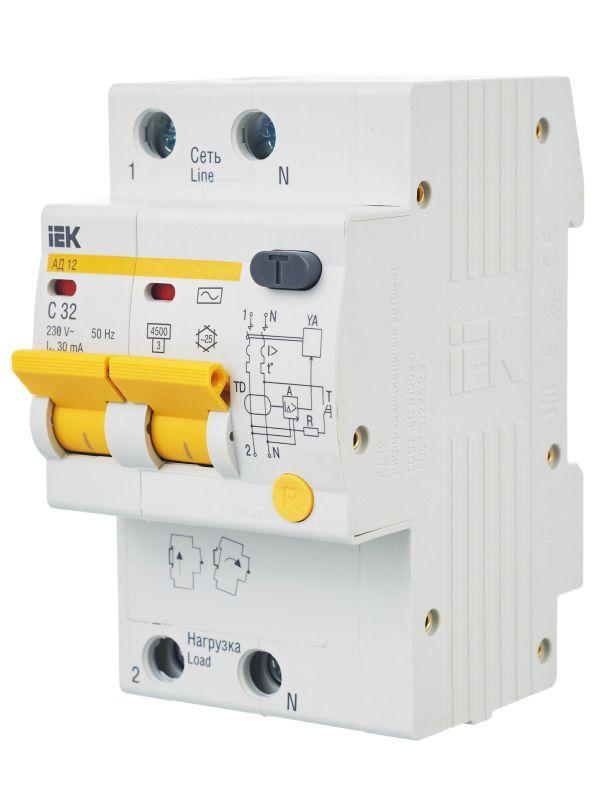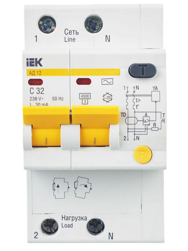 Выключатель автоматический дифференциального тока 2п C 32А 30мА тип AC 4.5кА АД-12 KARAT IEK MAD10-2-032-C-030