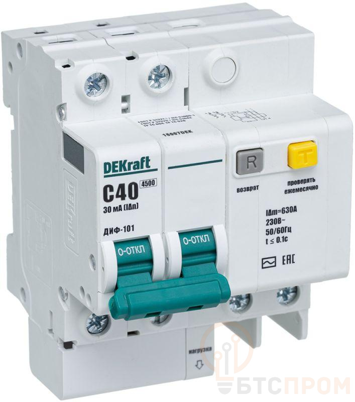 Выключатель автоматический дифференциального тока 2п C 40А 30мА тип AC 4.5кА ДИФ-101 6мод. DEKraft 15007DEK