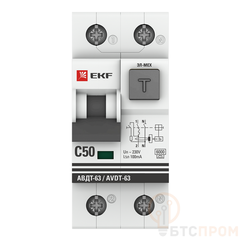 Выключатель автоматический дифференциального тока 2п C 50А 100мА тип A 6кА АВДТ-63 электромех. PROxima EKF DA63-50-100em
