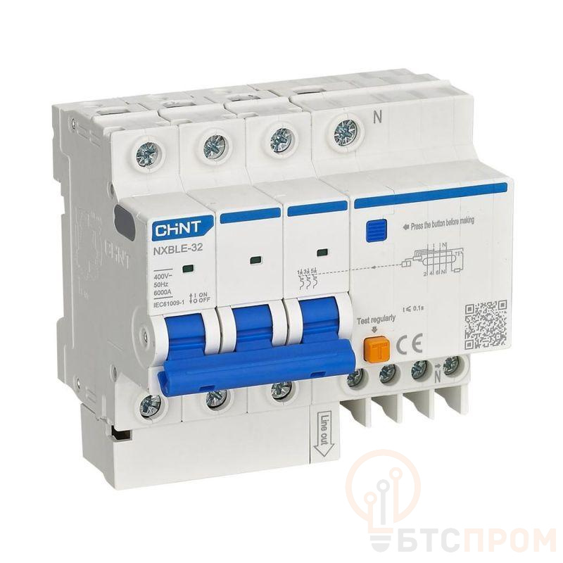 Выключатель автоматический дифференциального тока 30мА тип AC 6кА NXBLE-32 3P+N C10 (R) CHINT 819511
