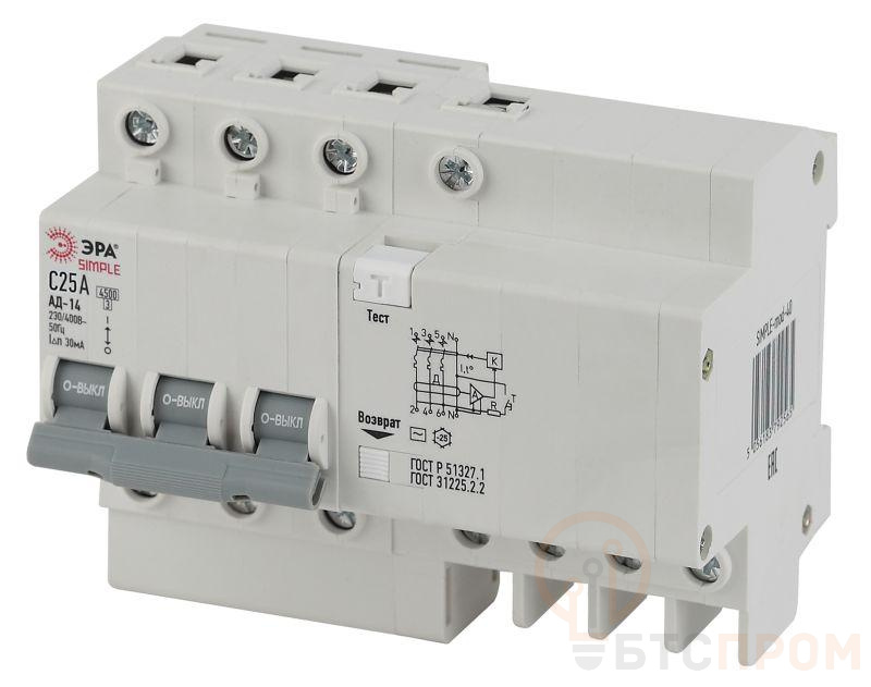 Выключатель автоматический дифференциального тока 4п (3P+N) 25А 30мА тип AC SIMPLE-mod-37 х-ка Эра Б0039295