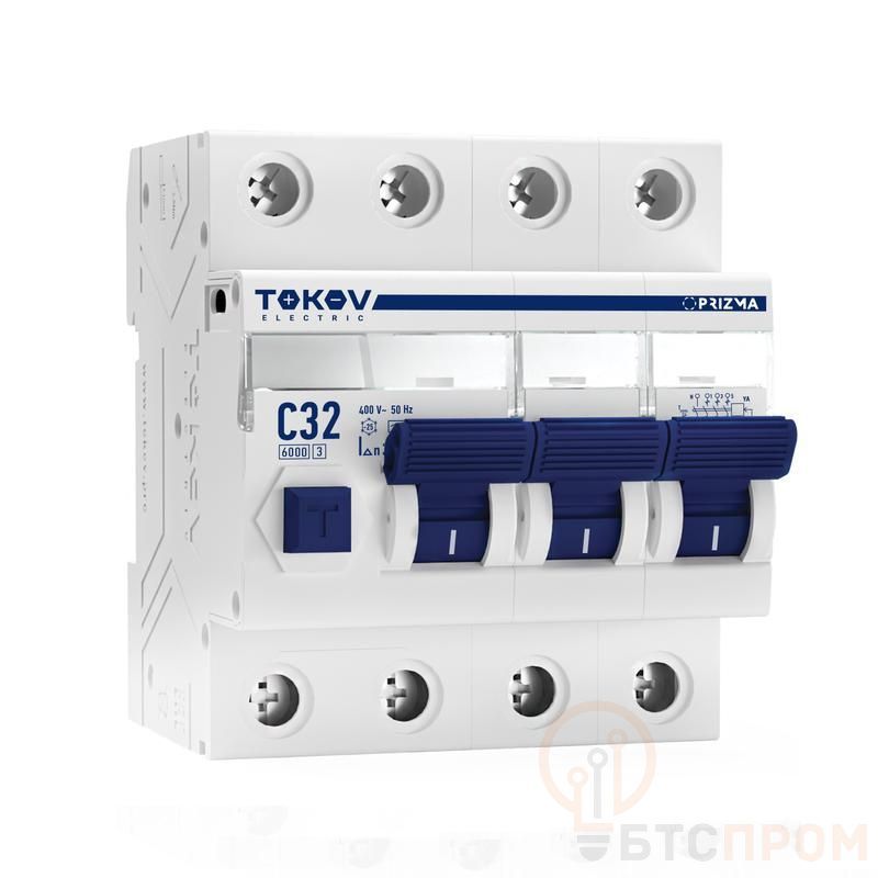 Выключатель автоматический дифференциального тока 4п (3P+N) C 32А 30мА тип AC 6кА PRIZMA TOKOV Electric TKE-PZ60-RCBO-4-32-30-AC