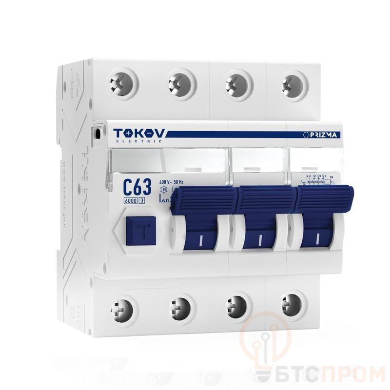 Выключатель автоматический дифференциального тока 4п (3P+N) C 63А 30мА тип AC 6кА PRIZMA TOKOV Electric TKE-PZ60-RCBO-4-63-30-AC