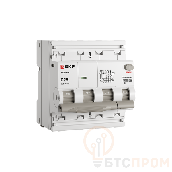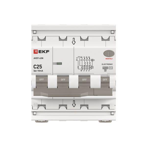 Выключатель автоматический дифференциального тока 4п (3P+N) C 25А 10мА тип A 6кА АВДТ-63N электронный PROxima EKF D63N46EA25C10