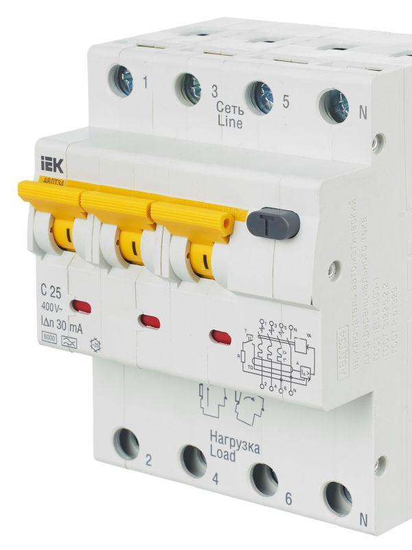 Выключатель автоматический дифференциального тока 4п (3P+N) C 25А 30мА тип A 6кА АВДТ-34 KARAT IEK MAD22-6-025-C-30