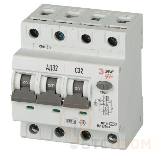 Выключатель автоматический дифференциального тока 4п (3P+N) C 32А 100мА тип A 6кА АД-32 электрон. PRO D326E4C32A100 Эра Б0059215