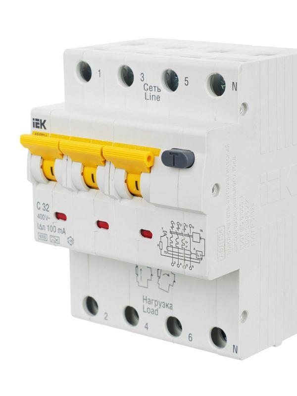 Выключатель автоматический дифференциального тока 4п (3P+N) C 32А 100мА тип A 6кА АВДТ-34 KARAT IEK MAD22-6-032-C-100