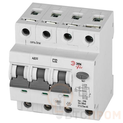 Выключатель автоматический дифференциального тока 4п (3P+N) C 32А 100мА тип AC 4.5кА АД-32 электрон. защита 230В PRO D32E4C32AC100P Эра Б0057816