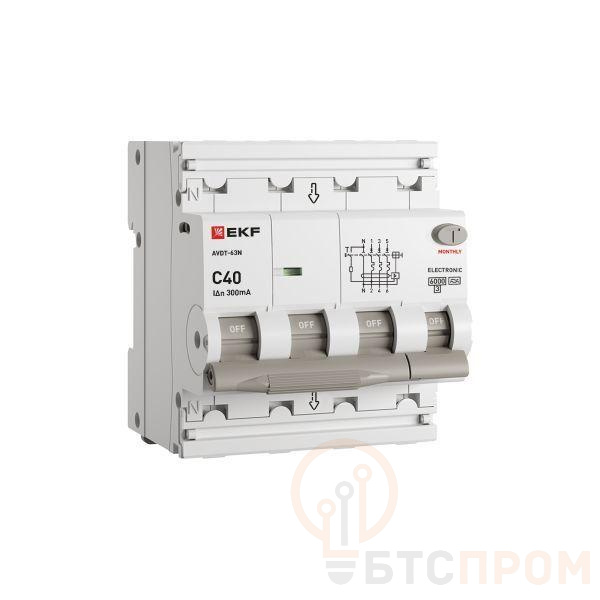 Выключатель автоматический дифференциального тока 4п (3P+N) C 40А 300мА тип A 6кА АВДТ-63N электронный PROxima EKF D63N46EA40C300