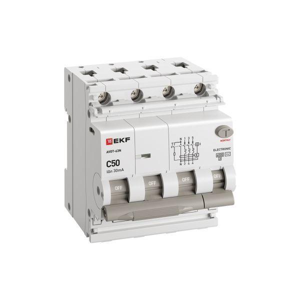 Выключатель автоматический дифференциального тока 4п (3P+N) C 50А 30мА тип AC 6кА АВДТ-63N электронный PROxima EKF D63N46E50C30