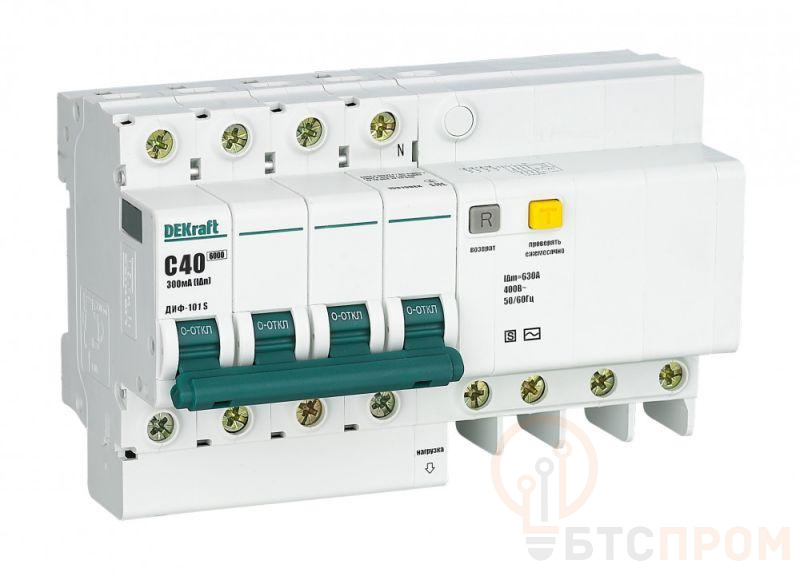 Выключатель автоматический дифференциального тока 4п 40А 300мА ДИФ-101 S селект. со встроен. защит. от сверхтоков DEKraft 15317DEK