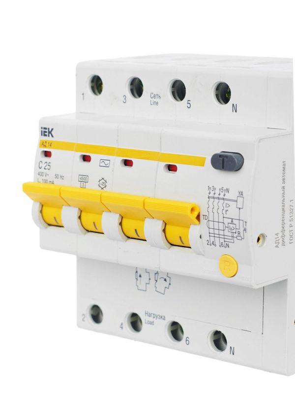 Выключатель автоматический дифференциального тока 4п C 25А 100мА тип AC 4.5кА АД-14 KARAT IEK MAD10-4-025-C-100