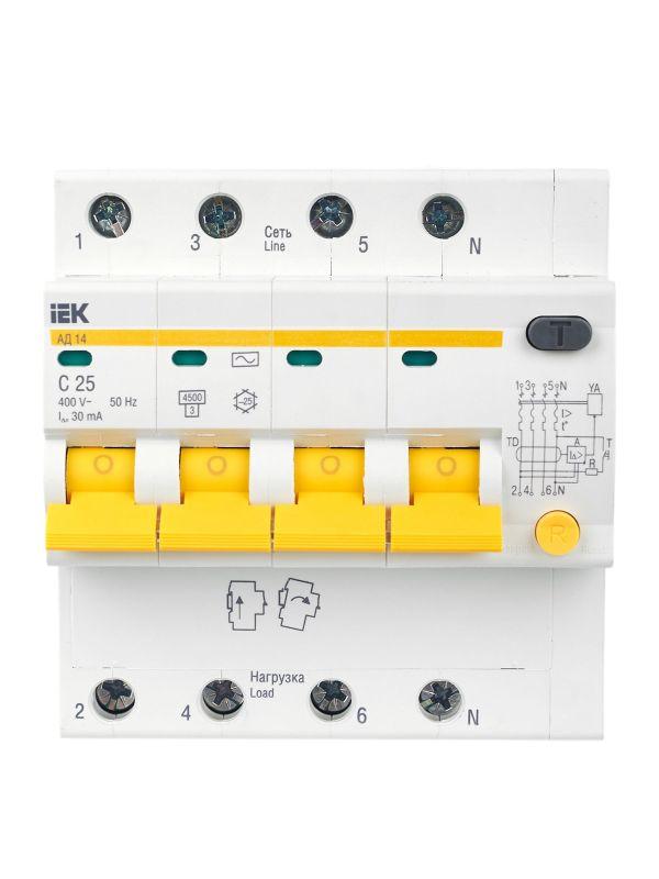 Выключатель автоматический дифференциального тока 4п C 25А 30мА тип AC 4.5кА АД-14 KARAT IEK MAD10-4-025-C-030