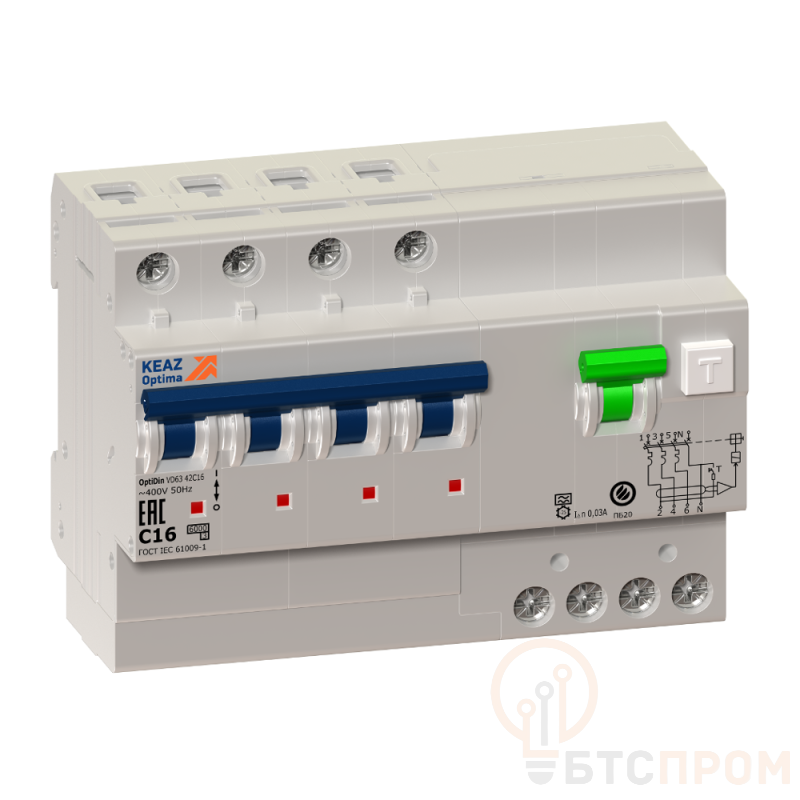 Выключатель автоматический дифференциального тока 4п C 32А 100мА тип A-S 6кА OptiDin VD63 УХЛ4 КЭАЗ 274847