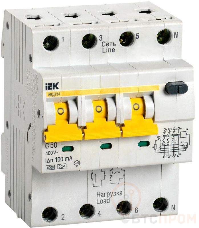 Выключатель автоматический дифференциального тока 4п C 50А 100мА АВДТ-34 KARAT IEK MAD22-6-050-C-100