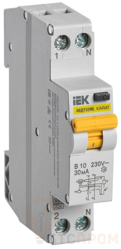 Выключатель автоматический дифференциального тока B 10А 30мА тип A АВДТ32ML KARAT IEK MVD12-1-010-B-030-A
