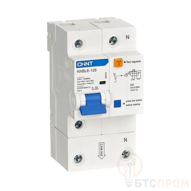 Выключатель автоматический дифференциального тока C 125А 300мА тип AC 10кА NXBLE-125 1P+N электронный (R) CHINT 820512