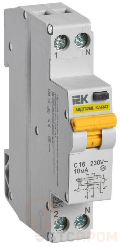 Выключатель автоматический дифференциального тока C 16А 10мА тип A АВДТ32ML KARAT IEK MVD12-1-016-C-010-A