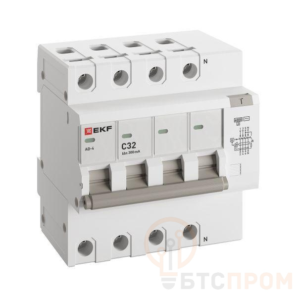 Выключатель автоматический дифференциального тока C 32А 300мА тип AC 6кА АД-4 (электрон.) PROxima EKF DA4-6-32-300-pro