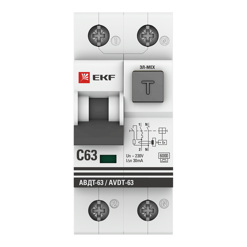 ОБНОВЛЕНИЕ ЛИНЕЙКИ PROXIMA Артикул аналог: D63N26MA63C30 Автоматический выключатель дифференциального тока АВДТ-63 EKF PROxima представляет аппарат, сочетающий функции автоматического выключателя с электромеханическим или электронным УЗО. При обнаружении автоматическим выключателем в защищаемом участке сети тока утечки (повреждения) на землю или сверхтока (тока перегрузки иликороткого замыкания) происходит срабатывание устройства, приводящее к отключению защищаемой сети. Возможна коммутация алюминиевым и медным проводником.Автоматический выключатель дифференциального тока малогабаритный АВДТ-63М EKF PROxima представляет аппарат, сочетающий функции автоматического выключателя с электронным УЗО типа АС в компактном корпусе шириной один модуль. При обнаружении автоматическим выключателем на защищаемом участке сети тока утечки (повреждения) на землю или сверхтока (тока перегрузки или короткого замыкания) происходит срабатывание устройства, приводящее к отключению защищаемой сети. Особое отличие дифференциальных автоматических выключателей EKF с электронным УЗО – в наличии блока защиты от перенапряжения. Возможна коммутация алюминиевым и медным проводом.